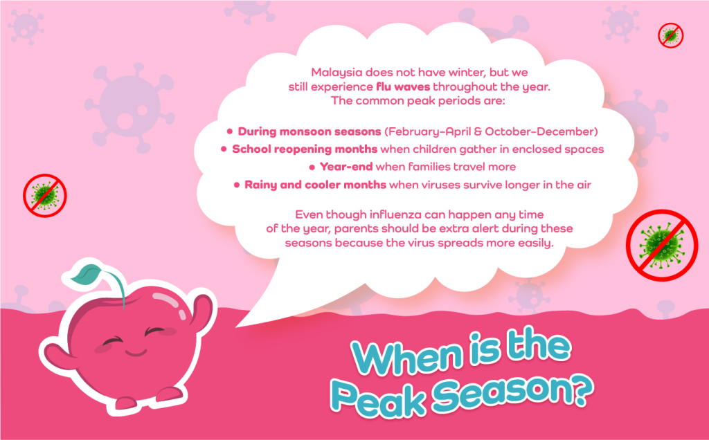 In Malaysia, the flu virus comes mainly from two groups: Influenza A and Influenza B. Both can infect children, but some strains are known to spread more aggressively.