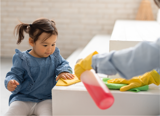 - Wipe down frequently touched objects (phones, toys, tables, doorknobs)